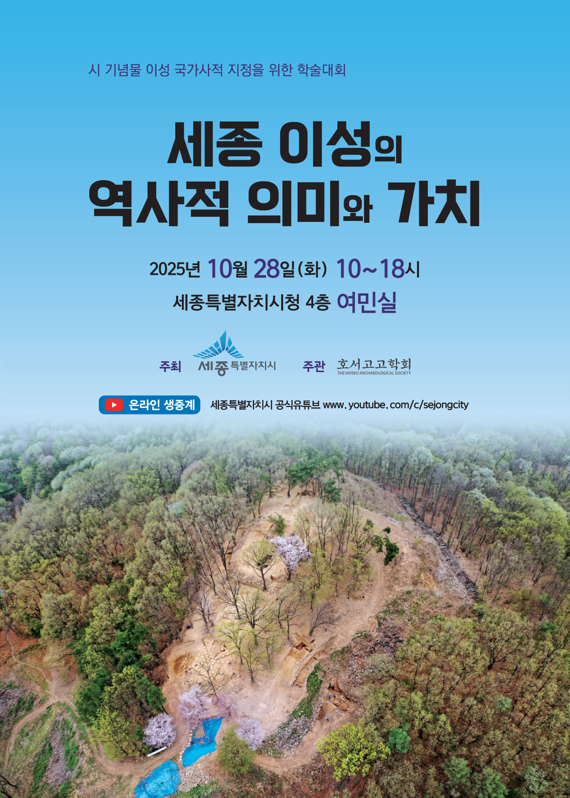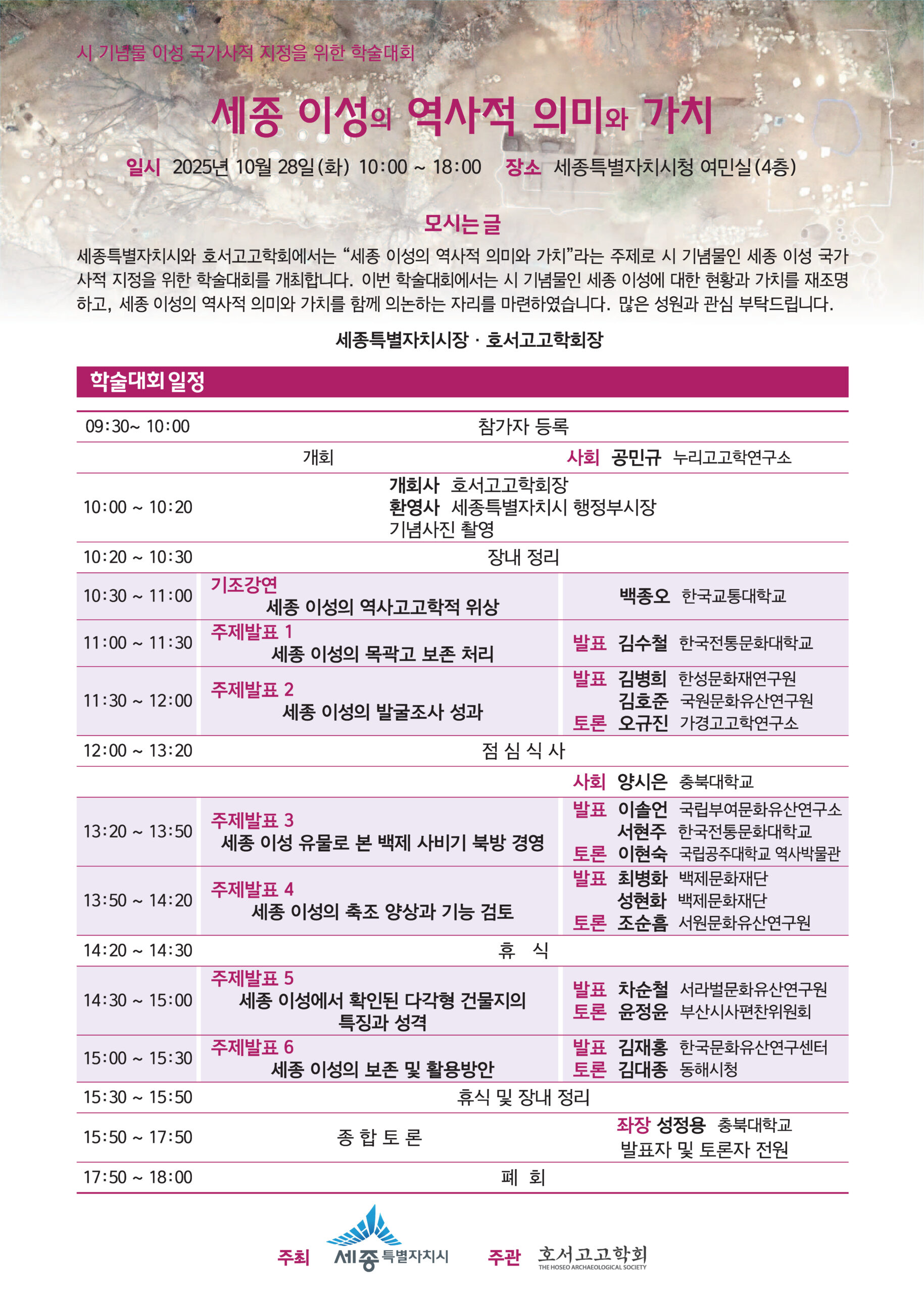 호서고고학회와 세종특별자치시에서는 2025년 10월 28일 화요일 ‘세종 이성의 역사적 의미와 가치’라는 주제로 학술대회를 개최합니다.